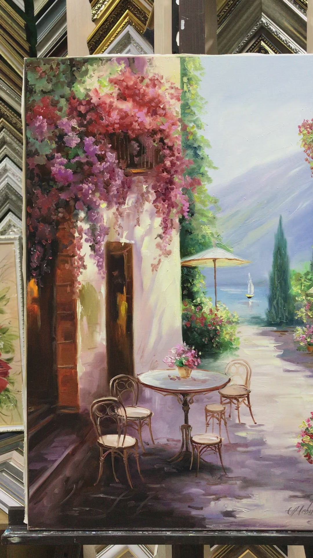Amalfi Coast Italy Oil Painting Original Italian Street Cafe Paintings Italy Art Work Summer Vacation Painting on Canvas Italian Positano Coast Painting