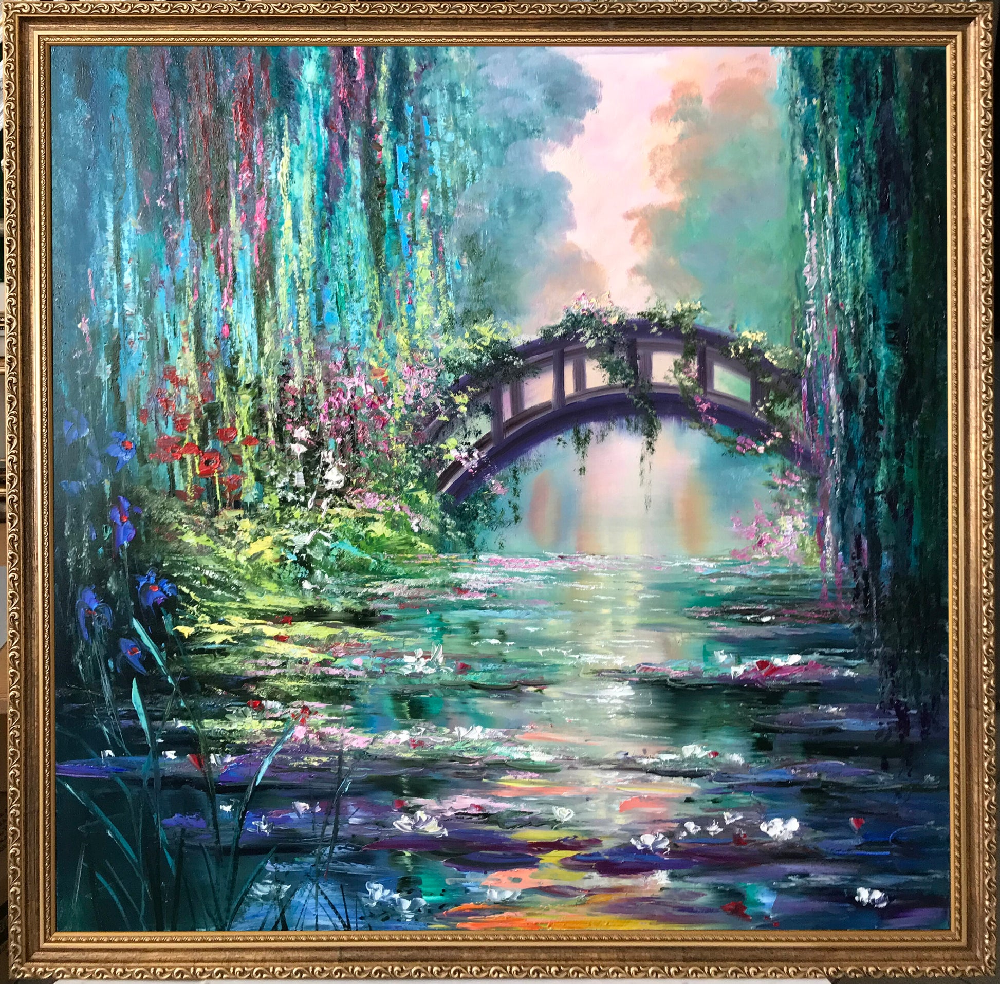 Claude Monet Painting Original Japanese Bridge Water Lilies Wall Art Green Nature Pond Painting