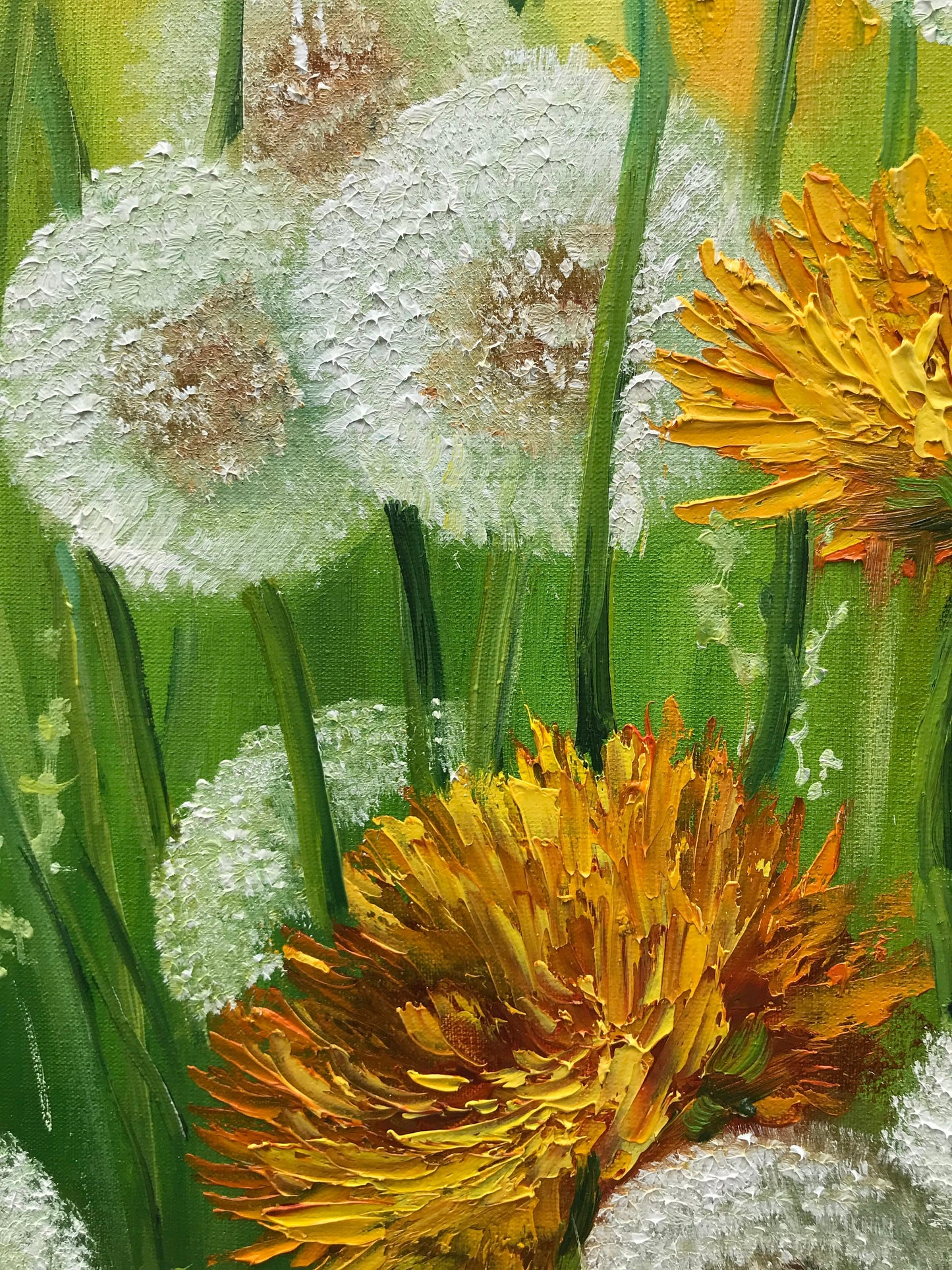 Dandelion Flower Oil Painting Original Art Work Ukraine Artist Botanical Art Ukrainian Painting Field of Flowers Painting Dandelion Wall Art