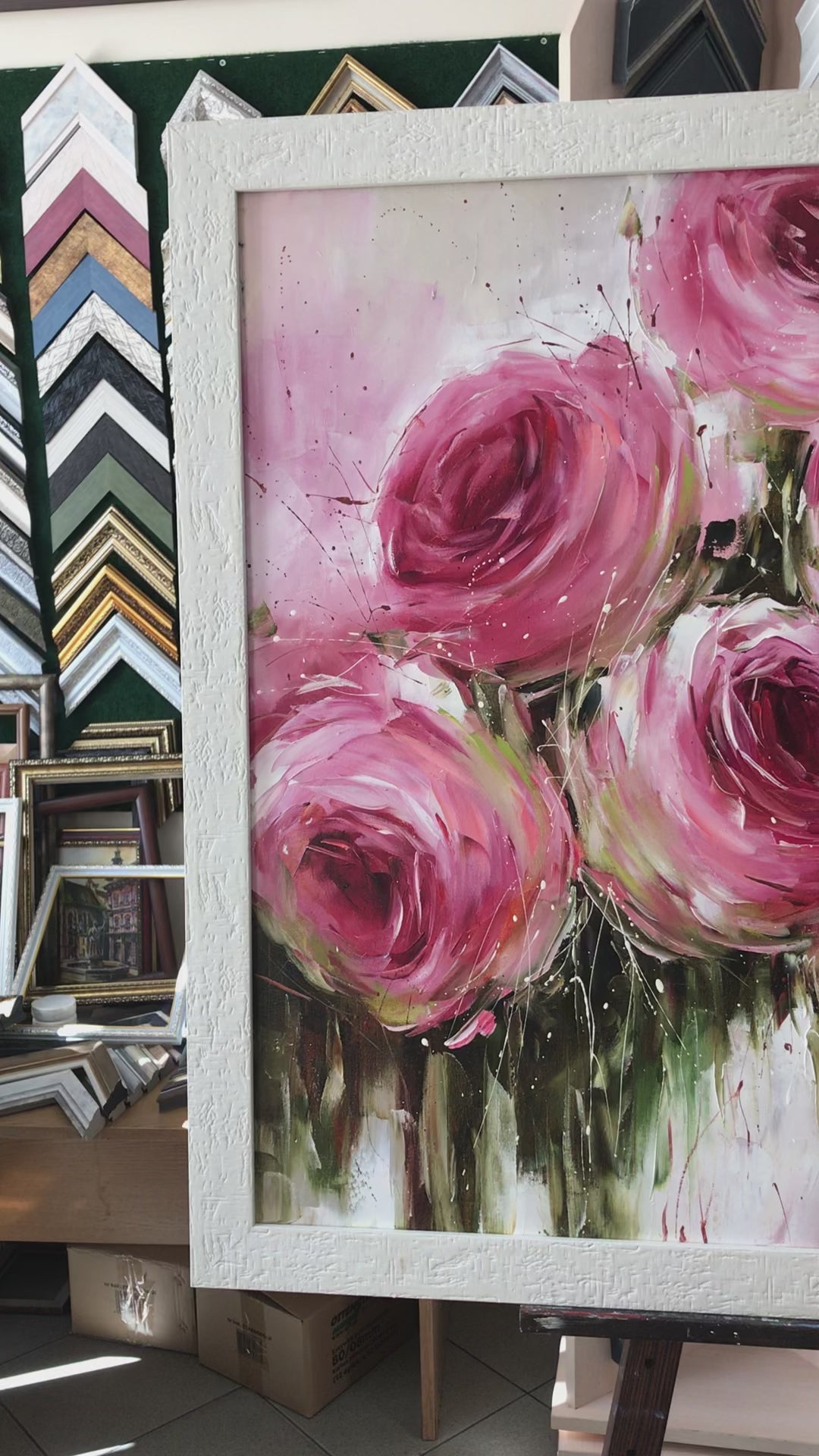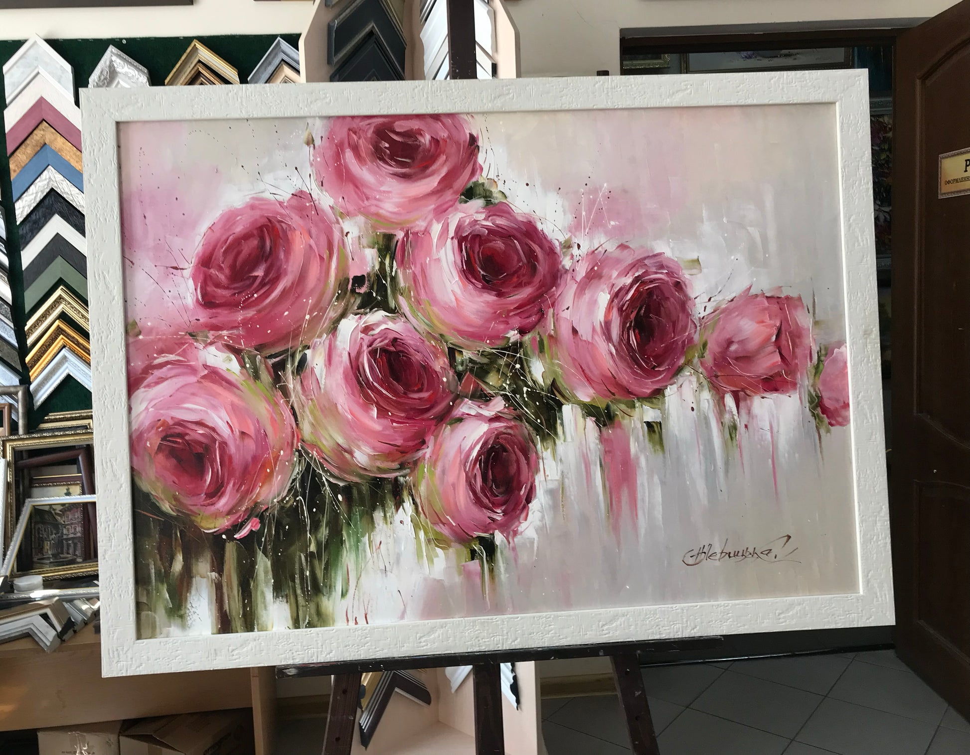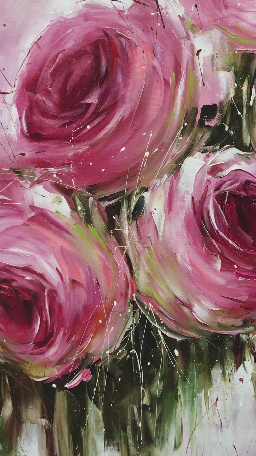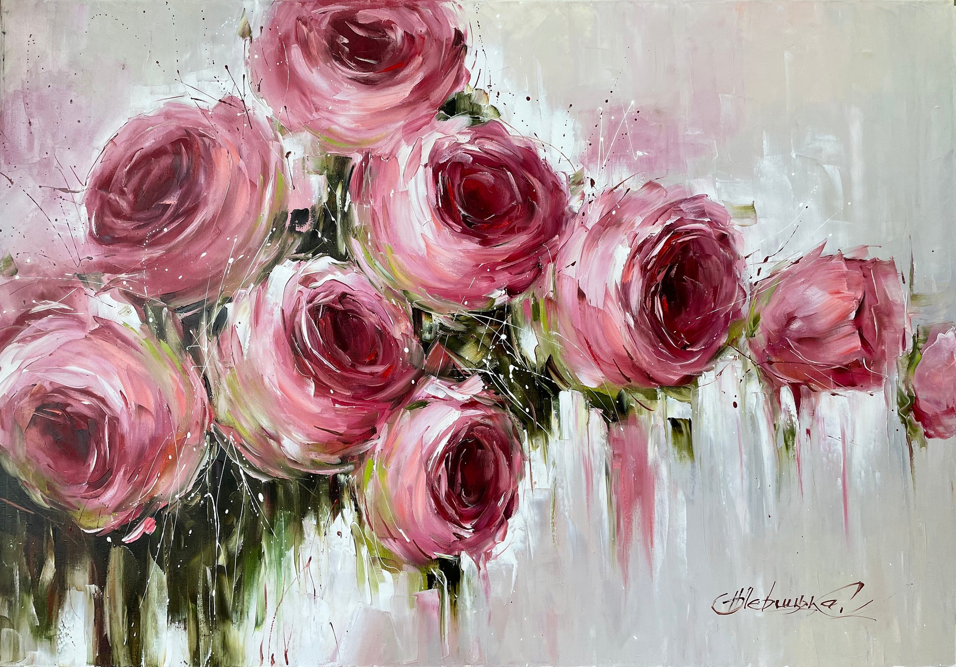 Large Abstract Roses Oil Painting Pink Flowers Canvas Wall Art Luxury Rose Dinning Room Decor Abstract Floral Extra Large Painting 60x40