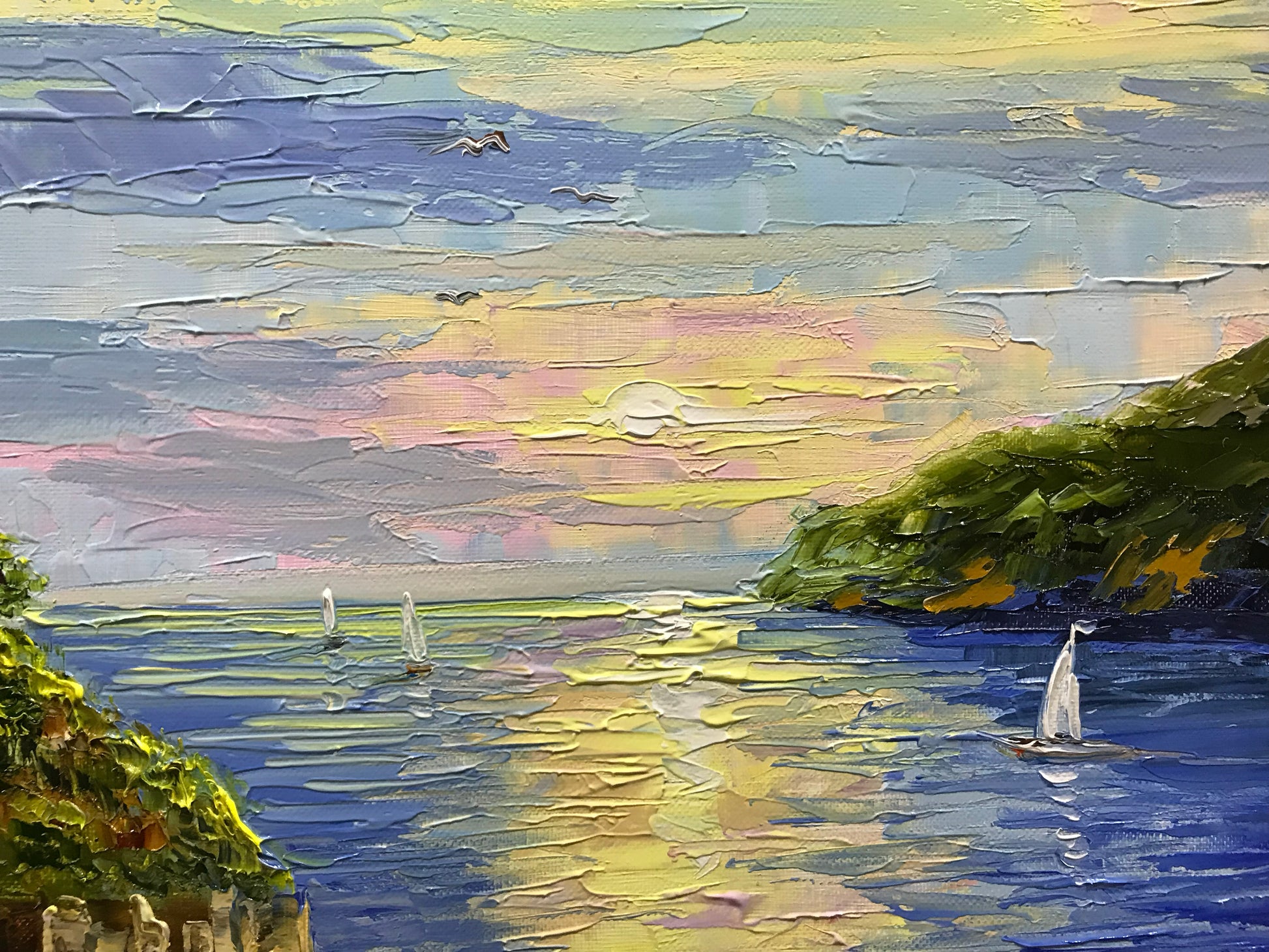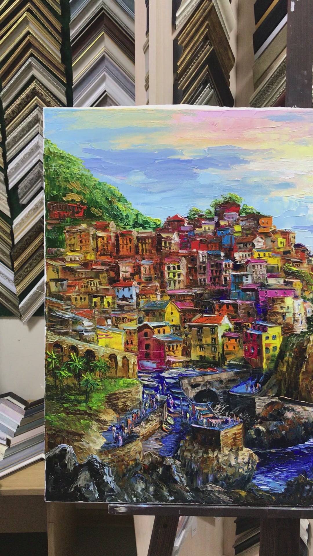 Manarola Cinque Terre Painting on Canvas Italy Oil Painting Italian Landscape Wall Art Italian Village Sunset at Cinque Terre Italy Paintings