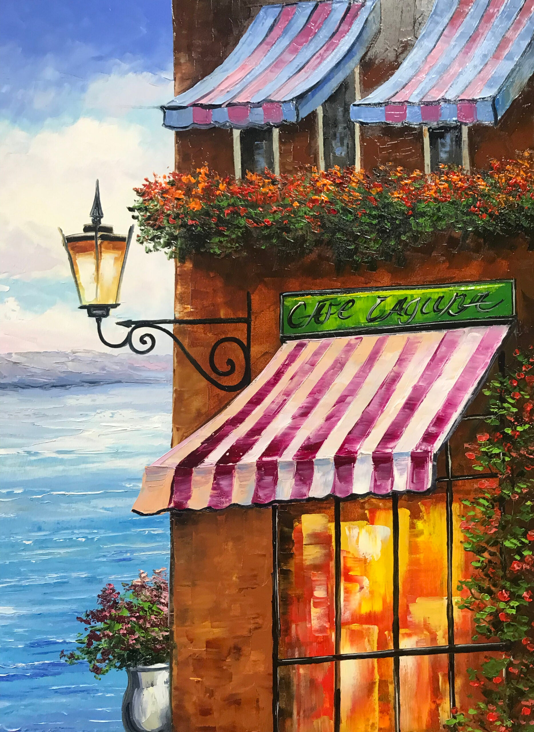 Mediterranean Scenery Oil Painting on Canvas Original Italian Cafe Painting Vacation Memory Gift Italy Oil Painting Mediterranean Art