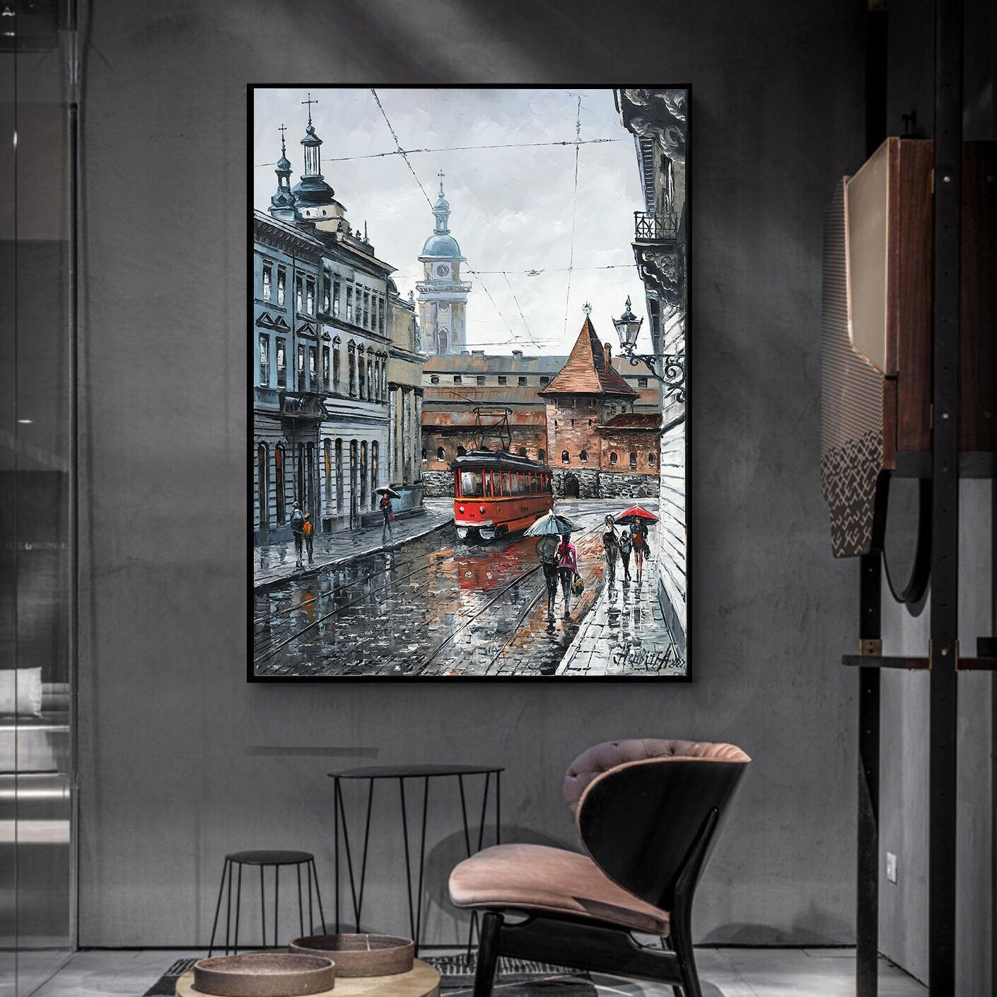 Old Prague Street Oil Painting Original Prague Wall Art City Street Painting on Canvas Impressionist Cityscape Paintings Street Scene Art