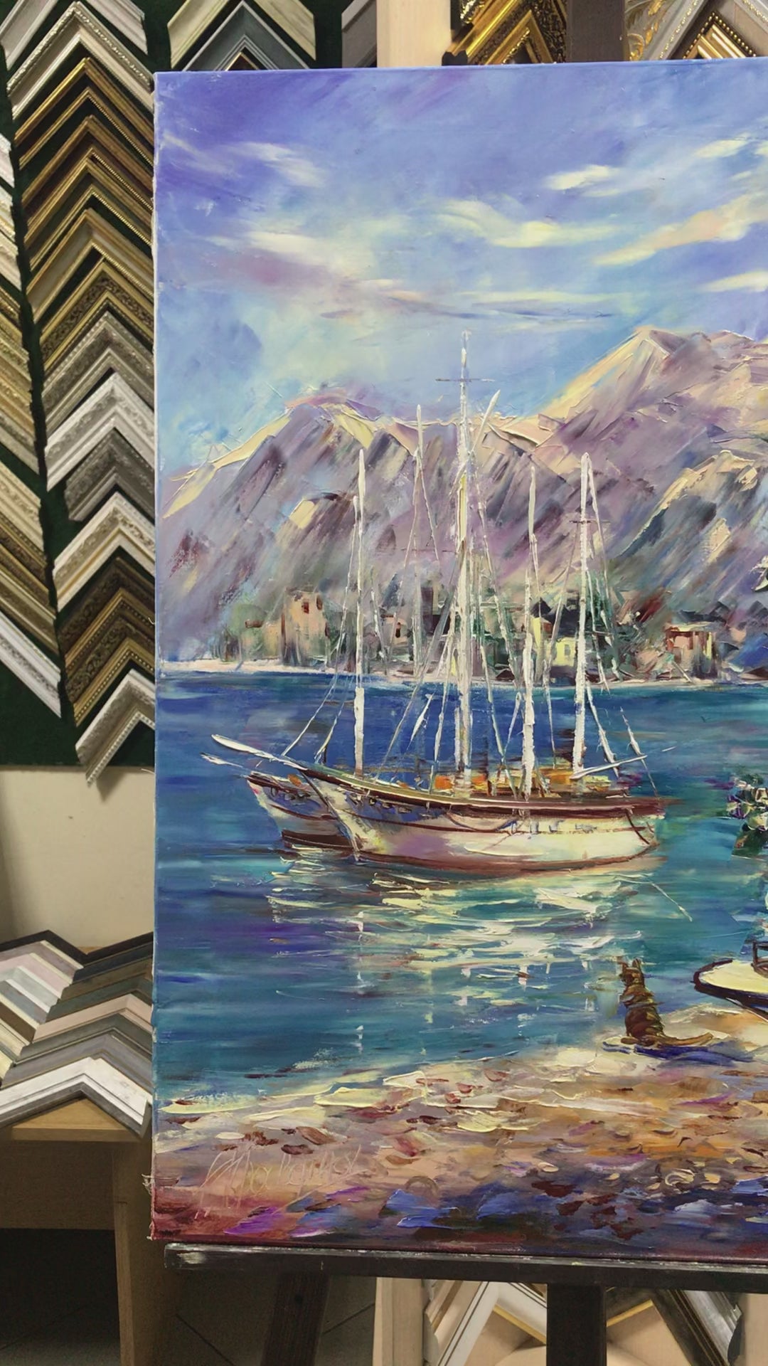 Positano Coast Oil Painting Original Italian Art Decor Sea Boat Artwork Mediterranean Sea Painting Italy Wall Art Amalfi Coast Painting
