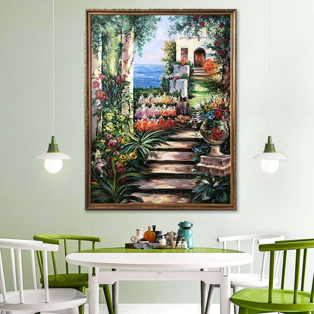 Positano Coast Oil Painting Original Italian Landscape Art Flower Garden Artwork Italy Painting on Canvas Italy Wall Art Amalfi Coast Painting