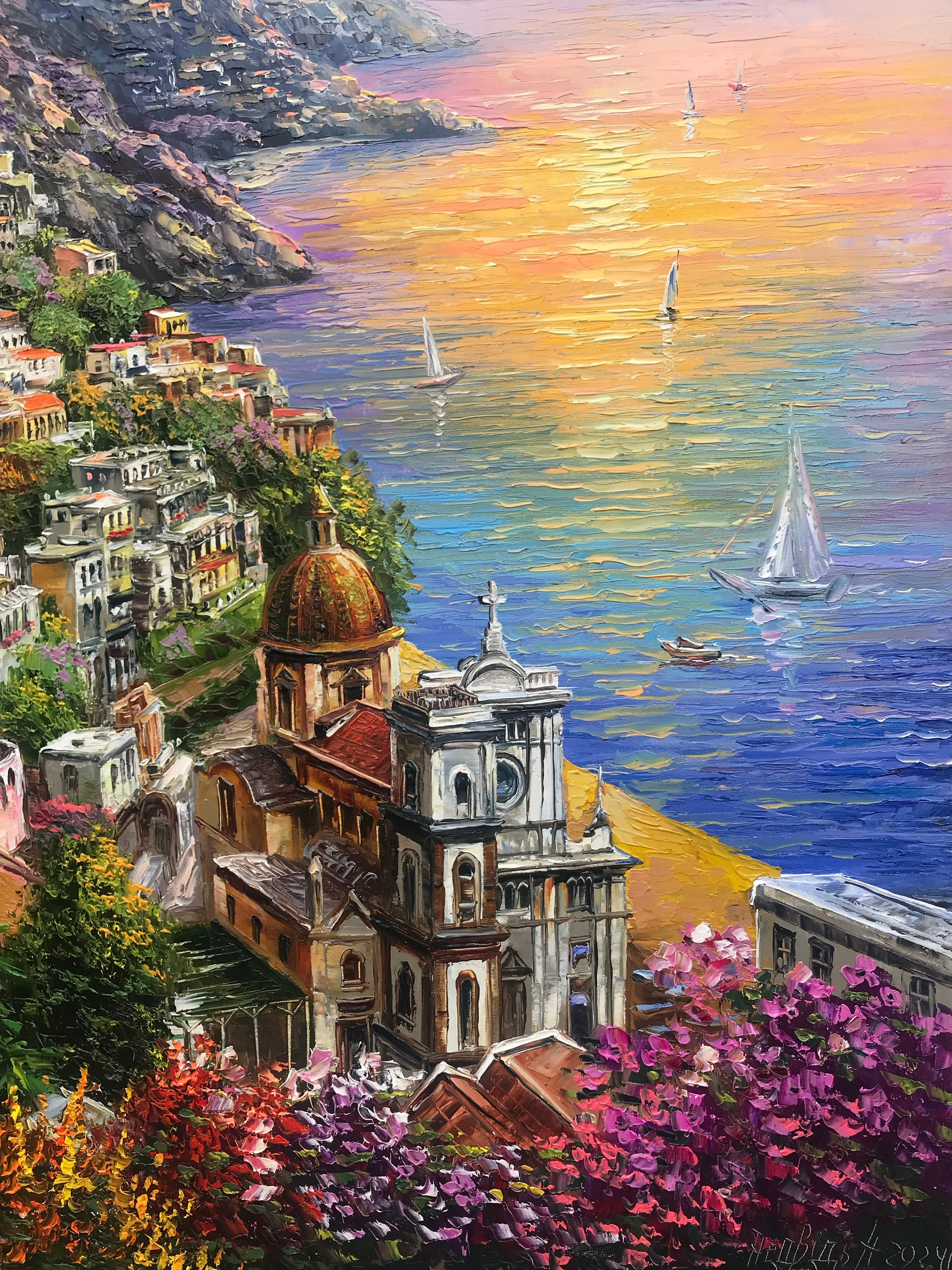 Positano Italy Painting on Canvas Amalfi Coast Oil Painting Original Italy Artwork Positano Canvas Wall Art