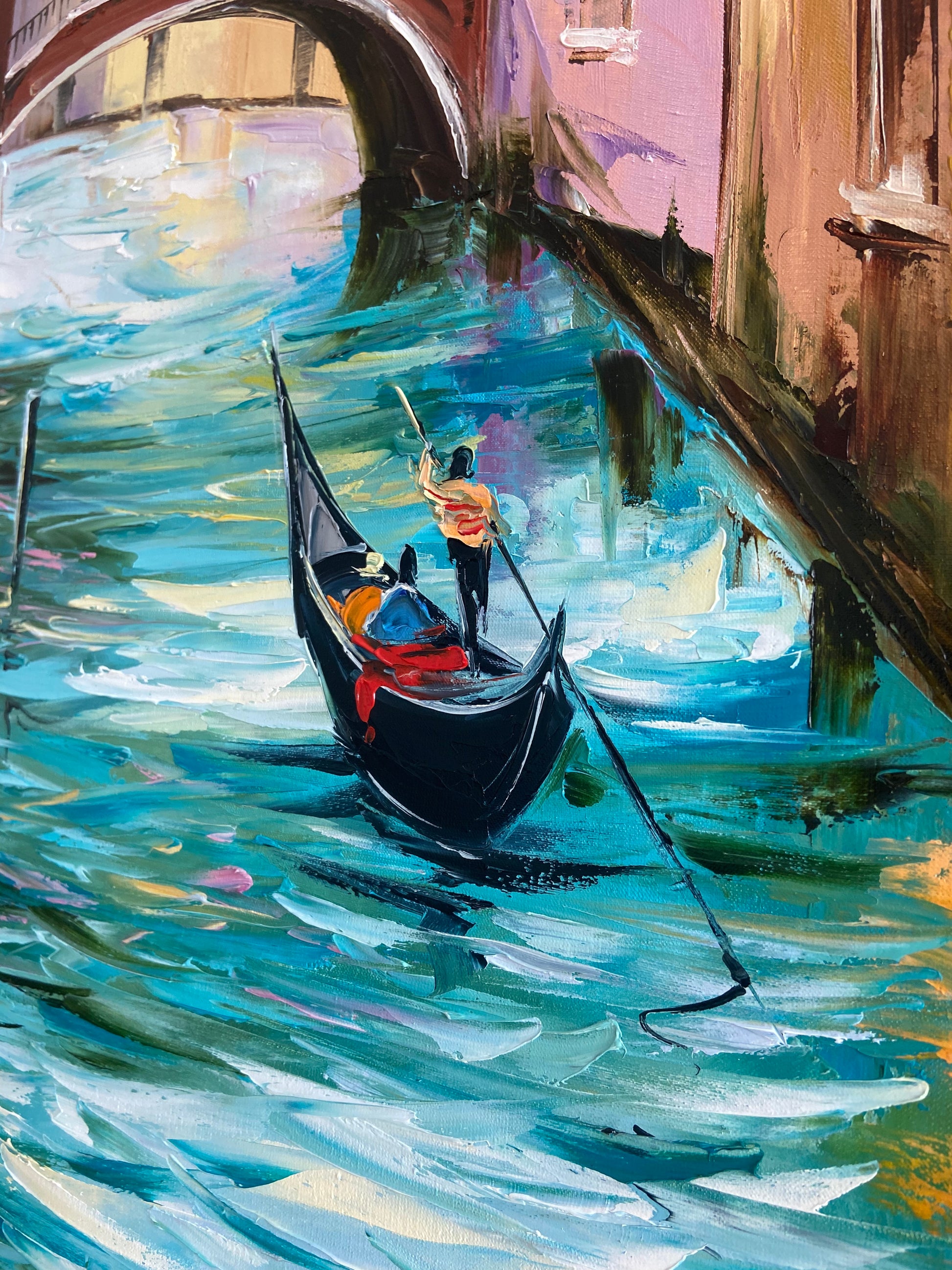 Venice Italy Oil Painting Original Canvas Art Gondola Boat Painting Travel to Italy Gift Italian Wall Art Framed Venetian Canal Oil Painting